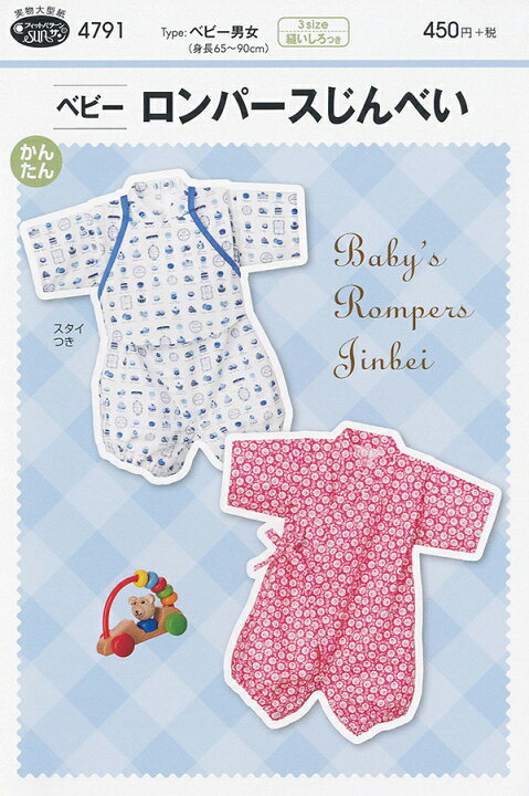 楽天市場 本日当店全品5倍 型紙 パターン ベビーロンパースじんべい ベビー男女 身長65 90cm No 4791 フィットパターンサン サンプランニング 大人 子供 ベビー 赤ちゃん 作り方 洋裁 あなたの街のミシン専門店創作工房
